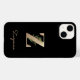 Svart telefonväska i elegant har ett botaniskt monogram i guld i mitten.