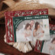 En vacker hand illustrerar varggrön design som omfattar prydnadsföremål och vinterfåglar ger en elegant och ett klassiskt rött julkort och grönt. Ditt eget foto kan läggas till.