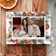 Skicka festive hälsning med denna Elegant Helgdag-foto för botaniskt andedräkt i God jul. Vågräts utformning visar ditt familjefoto med en vattenfärgad krans av pinekoner, gräs, eukalyptus, bär och torkade citrusskivor. Lägg till din Julhälsningar och familj namn i klassisk typografi nedanför fotot. Kortets baksida ger utrymme för ditt personlig-meddelande, så att du kan blanda den sterila botaniska charmen med tidlös helgdag elegans.