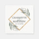 Engångsserbara pappra blöjor av elegant bröllop MONOGRAMS/ INITIALER med djup grönt, sage färg löv, grenar, blad, grönsak - botaniskt tema. Faux guld foil ram i diamantform. Perfekt för någon tid på året eller bröllop tema. Fintvätt i löv med vattenfärg.
