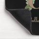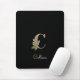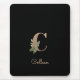 Den svarta musmattan i elegant har ett botaniskt monogram i guld i mitten.