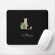 Den svarta musmattan i elegant har ett botaniskt monogram i guld i mitten.