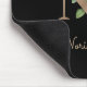 Den svarta musmattan i elegant har ett botaniskt monogram i guld i mitten.