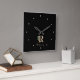 Elegantens svarta väggklocka med ett botaniskt monogram för guld och eget namn.