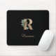 Den svarta musmattan i elegant har ett botaniskt monogram i guld i mitten.