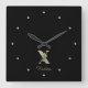 Elegantens svarta väggklocka med ett botaniskt monogram för guld och eget namn.