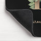 Den svarta musmattan i elegant har ett botaniskt monogram i guld i mitten.