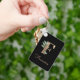Elegantens svarta nyckelkedja med ett guld botaniskt monogram i mitten.