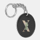 Elegantens svarta nyckelkedja med ett botaniskt monogram guld med stort X brev i mitten.