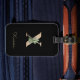 Elegant svart bagagemärke med ett botaniskt monogram guld i mitten.