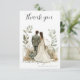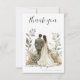 Fira din bröllopsdag med stil med detta eleganta tackkort, med en romantisk illustration av en brud och en brudgum omgiven av mjuk botanisk grönska och varma blommiga nyanser.