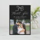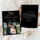 tacksamhet med det här moderna fotot-bröllop-kortet som innehåller en handdragen båge och "Tack" i elegantens vita kalligrafi mot en fet svart bakgrund. Anpassa designen med namn- och bröllop-datum ovanför bilden av vågrät bröllop för att få en tidlös keepé. På baksidan av kortet finns utrymme för ditt personliga tack, så att du kan uttrycka en hjärtlig uppskattning till familj och vänner. En slående svartvit palett gör den här designen till perfekt för klassiskt, contemporary eller minimalistiskt bröllop.
