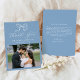 Med det här snyggten är bröllop ett tack för foto som du har med ett handritat båge och "Tack" i elegantens vita kalligrafi mot en mjuk blå bakgrund. Anpassa med din namn och bröllop-dejt ovanför ditt favoritfoto från vågrät bröllop för att skapa ett bestående memorandum. Kortets baksida ger plats för ditt personliga tack, vilket gör att du kan känna dig uppskattad av familj och vänner. Den nya blåa och vita paletten gör att den här utformningen är en perfekt som passar för moderna, romantiska eller kust-bröllop.