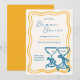 et the tone for a chic summer gathering with this elegant Summer Soirée invitation. Featuring playful yellow retro border lines, delicate handwritten script, and clinking cocktail glasses tied with ribbon, this invite is perfect for a classy backyard party, rooftop cocktail hour, or casual housewarming. Customizable with your event details, it's ideal for summer parties, engagement celebrations, or birthday soirées.