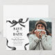Meddela din kommande examen i tidlös stil med detta eleganta "Spara datumet"-meddelande. Med en bild av examen på en ren vit bakgrund, inramad av en stilren svart akvarellbåge och ett band i ramverket, förenar denna design klassisk sofistikation med modern charm.
