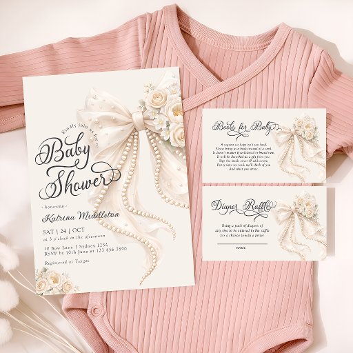 Ivory Bow & Pearls Baby Shower CollectionDesignad av Katsiaryna Lukyanava
