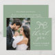 Elegant Bow Sage Grönt Photo Bröllop Tack Kort