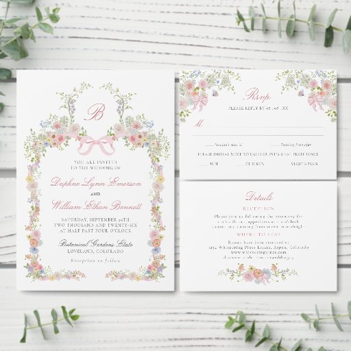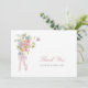 Elegant Bows and Wildflowers Thank You Card. This thank you card features a graceful arrangement of watercolor wildflowers tied with a soft pink ribbon bow for a romantic, refined look. The delicate florals and airy composition reflect the charm of a Victorian garden aesthetic. Perfect for expressing gratitude with timeless elegance after your celebration.