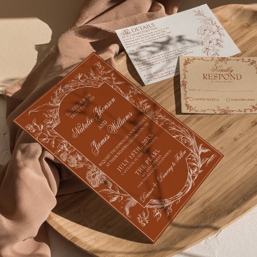 Elegant Bränt Orange Blommig Boho Terrakotta Bröll Inbjudningar