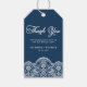 Med det här anpassadet kan du lägga till en elegant som accent till dina gåvor. Tack för märkrn. Den har vit botanisk brocade snöre på en marin blå bakgrund. Anpassa genom att lägga till namn och information. I elegant är snöre tack för att du ger märkrn perfekt för bröllop, möhippor, födelsedagar och så mycket mer.