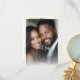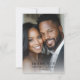 Elegantens moderna 2-foto-bröllop-kort med ett modernt typsnitt i snyggten och leende brud och triom. Ett foto med ett hjärtligt meddelande på baksidan. Teckensnittet med namn och date är ett klassiskt serif-teckensnitt för eleganten. Byt ut exempelbilderna mot egna favoritfoton från bröllop.