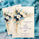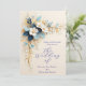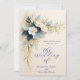 Elegant bröllop blå vit kräm guld blommor inbjudningar
