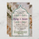 Inbjudan till elegant bröllop med blommor i bakgrunden och en grönt ram i mitten. Perfekt för att lägga till en aning sofistikering och naturinspirerad charm till din speciella dag.