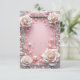 Elegant dekorativt ram med mjukt rosa ros och glandiga pärlor med mousserande gemsten runt ljus rosa bakgrund, skapande ett lyxigt och sofistikerat estetiskt material.
