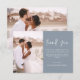 Ett minimalistiskt Dusty Blue Bröllop-tack för att du har ett foto på framsidan och baksidan. Tack-korten innehåller en modern handskriven kursiv skripttypografi som är elegant, enkel och modern till använda efter att du bröllopsdag firande.