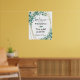 Välkomna gäster till ceremonin eller mottagningen i bröllop med denna poster utskrift. Utformningen har vackra vattenfärger, eukalyptus och vit blommigt grönt accentuerad med faux guld glitter oval ram. All text, teckensnitt stilar och färg kan ändras för att anpassa och samordna med bröllop. ALTERNATIV: Provet visas i en 20 x 24-tums storlek på Value-Papper (projektionsyta). Andra utskriftsstorlekar av standardtyp och anpassningsbar, papper kvalitet och framtagning, DIGITAL DOWNLOAD eller överföring av designen till ett skum, banner, tapetik eller andra produktalternativ finns på beställningssidan. TIP ON RESIZING: Välj Anpassningsbar Storlek för jämna gräns genom att ändra höjd och bredd proportionellt efter att du har klickat på ikonen UNLOCK. ASSISTANS: Om du vill ha hjälp med designändringar eller anpassning, ändra storlek på eller överföra designen till en annan Chatta kontaktar du designern FÖRE ORDERING via fliken Zazzle MESSAGE nedan eller e-post makeitaboutyoustore@gmail.com.