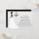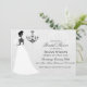Elegant bröllop Gown inbjudningskort för möhippan har en svart och vit brud på en vit dammbakgrund. Bilder från Crafty Clip www.mygrafico.com