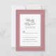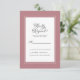 Kortet Dusty Ro bröllop OSA för detaljer i djurutrymmet har en vacker chic gräns i dammig ro som innehåller en elegant petite white gräns. Kalligrafi och manus är kol-grått på vit bakgrund. En modern mall för datum och år kompletterar den unika kalligrafiutformningen. Missa inte de samordnande returetiketter för OSA som finns i en separat lista. https://www.zazzle.com/elegant_wedding_rsvp_dusty_rose_and_white_label-106839687056362660