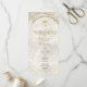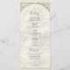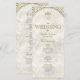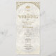 Denna eleganta bröllopsprogram har en raffinerad elfenbensvit marmorerad textur i bakgrunden med glänsande guldtext och utsmyckade accenter. Den vertikala layouten visar en stilren blandning av serif- och kalligrafifonts och ger en vacker översikt av er bröllopsceremoni. Guldvapnet med initialer i monogram lägger till en kunglig touch, vilket gör denna program perfekt för formella, lyxiga eller tidlösa bröllop. Helt anpassningsbar med er ceremoniordning, namn, datum med mera.