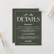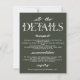 all viktig information för din stora dag i stil med detta kort för elegant bröllop-detaljer. Det här kortet är designat för att komplettera vilken bröllop-svit som helst och har modern typografi med en minimalistisk bakgrund. Perfekt för att förse gästerna med transportinformation, logi och registerinformation. Alla har allt de behöver för firande. Ett tänkvärt och praktiskt tillägg som gör både skönhet och tydlighet till ditt bröllop-kontor.
