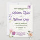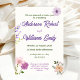 I inbjudan till elegant bröllop finns en vit bakgrund som är försedd med blommor från lila och rosa, kompletterad med löv för lush grönt. Perfekt för att lägga till lite romantik och sofistikering till din speciella dag.