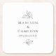 Elegant bröllop Löv Namn & Date Black White Underlägg Papper Kvadrat