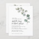 Budget eukalyptus grönska löv modern minimalistisk trädgårdsfest eleganta bröllopsinbjudningar och detaljer inbjudan. Enkel samtida botanisk design.