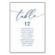 Bord-diagramkort för gästgästgäster i bröllop, Modern Elegant Script. Anpassa texten och/eller ta bort och fylla i med bröllopsfestens tema (Flottblå).