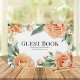 En vacker elegant enkel bröllop gäst bok, med persikogrön blommigt, en botanisk boho stil, enkel typografi, med briden och brudgummen namn, bröllop, vackra trädgårdsblommor, med sommarfall i vår, minimalistisk text, med ett unikt kreativ