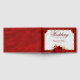 Exquisite röd ros, guld filigree, vit satin och en simulerad röd metallisk bakgrund hela komen tillsammans på denna lyxiga bröllop gäst bok. Anpassa gästboken med dina egna uppgifter till din speciella dag.