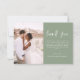Elegant bröllop Sage Grönt Tack Photo Kort