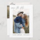 Bröllop Spara Datum-kort som har ett foto på framsidan och baksidan. Spara Datum-korten innehåller en modern handskriven kursiv typsnitt som är elegant, enkel och modern att använda efter din minimalistiska enkla bröllopsdagfirande.