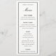 Elegant bröllop-meny, platta kort med redigerbar rubrik och text på framsidan och baksidan. Enkel svart gräns och textlayout. Om baksidan inte behövs anpassar du och tar bort allt.