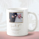 En elegant befordrar bröllop-fotot mugg med ett personligt bröllp-foto-, brud- och groomdatum för namn och bröllop. En elegant och snyggt tack för fotot mugg - underbar för gästerna i bröllop. Tack " i ett modernt handskrivet skriptteckensnitt. Lägg till ditt favoritfoto från bröllop i mallen.
