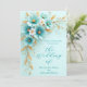 Elegant Bröllop Teal Blå Vitt Guld Blommor Inbjudningar