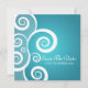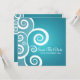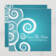 Elegant bröllop "Spara Datum"-design med romantiska vita virvlar på blå, och anpassade namn, datumtext och dekorativt monogram. Imponera på familj och vänner med denna stilrena och moderna design. Helt anpassningsbar! Lätt att använda och lätt att anpassa. Beställ idag!