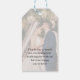 Elegant bröllopsbild i rosa med tacksamhet presentetikett
