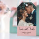 Lägg till en personlig och hjärtlig touch till dina bröllopsfavorer med denna eleganta Rosa ”Kärlek och Tack” presenttagg. Framsidan visar ditt favoritbröllopsfoto, medan baksidan har plats för ett annat foto och ditt personliga tackmeddelande. En perfekt blandning av stil och sentimentalitet som är idealisk för att förpacka presenter eller dekorera bröllopsfavorer på ett meningsfullt sätt.