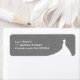 En vacker bröllopsklänning på en illustrerad grå linnebakgrund framhäver denna etikett för bröllopsduschens returadress. Denna etikett är en del av den Eleganta Bröllopsduschen Kollektionen i grått linne. Om ytterligare koordinerade föremål behövs, kontakta oss bara på prettyfancyinvites@gmail.com med din förfrågan.