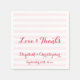 Skapa dina egna anpassade, personliga, eleganta, moderna, rosa randiga mönster, vacker typografi / handstil / typsnitt, bröllop / årsdagsfest cocktail servetter. Skriv bara in brud och brudgums eller fru och makes namn och bröllopsdatum för att anpassa. Eleganta, klassiska pappersservetter, perfekta för bröllopsfest, årsdagsfirande, förlovningsfest och mer.
